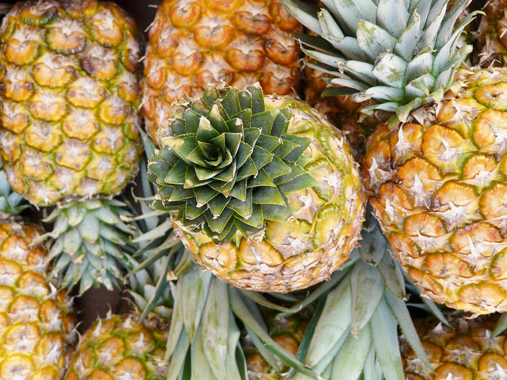 Fresh-cut pineapple, frozen pineapple, juice, puree, and canned products are the primary outputs.